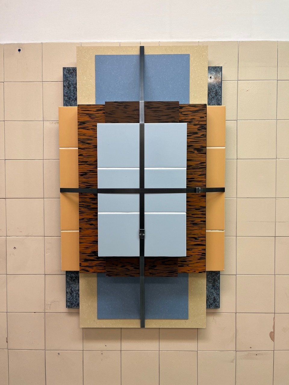 Rather than treating exhibition architecture as neutral support, these works make visible what usually stays behind the scenes — the structures that hold an exhibition together and determine how it is experienced. An artist’s bench is also a sculpture. A partition wall is also an artwork. The infrastructure of the show is the show.