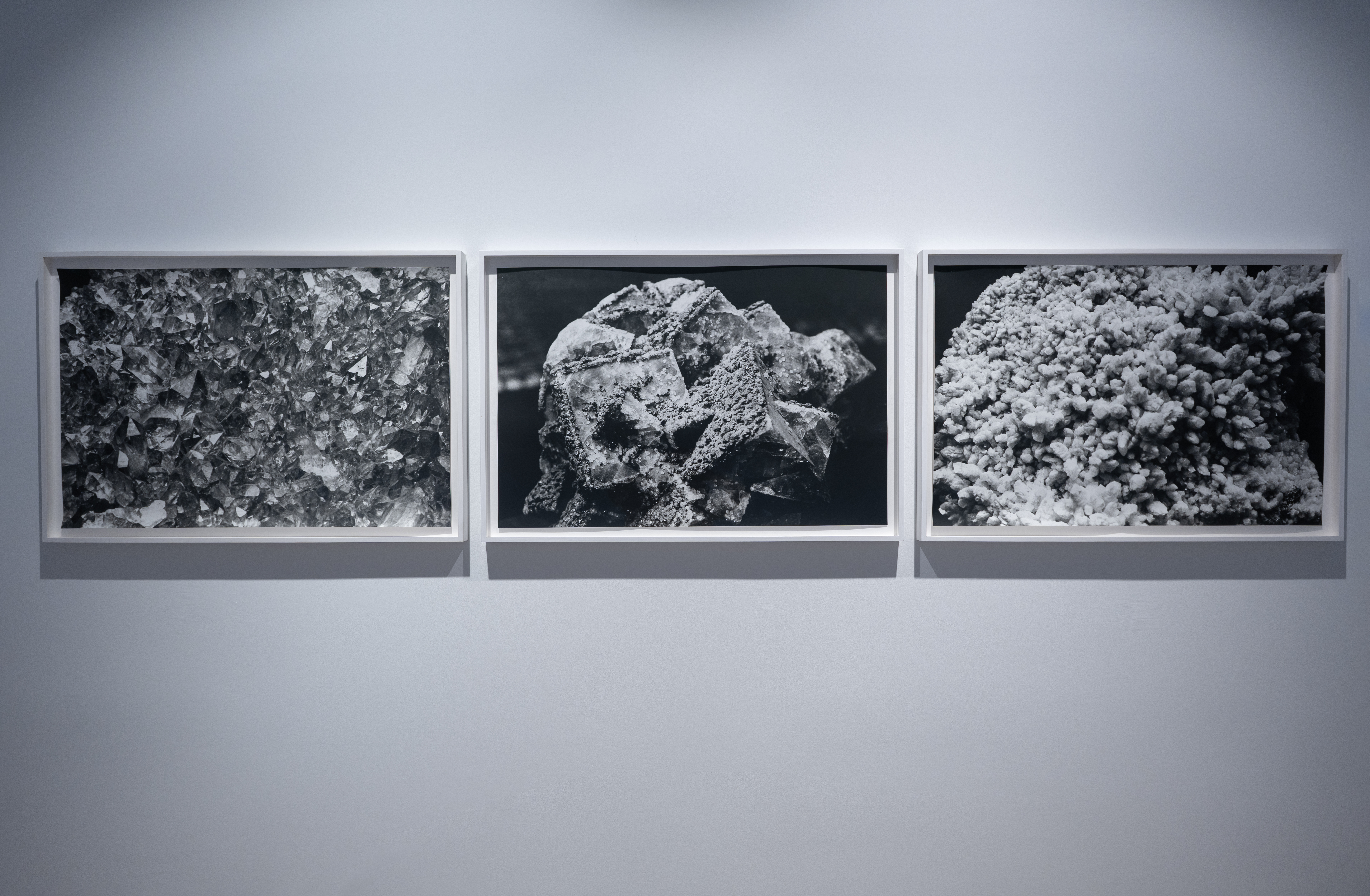 The series titled BARYTA gestures towards a critical interrogation of the photographic medium itself, referencing baryta paper (one of the most historically significant materials in photographic printing). The works depict samples of barite, a barium-based mineral housed in the Natural History Museum in Vienna. Each image functions as a fragment of a planetary landscape, a visual index of the geological site from which the specimen was extracted. Bizumić draws attention to the paradoxes embedded in the promotion of so-called ‘green alternatives’ in energy production, such as lithium for batteries, exposing the environmental degradation and ecological blind spots often obscured within prevailing narratives of progress.