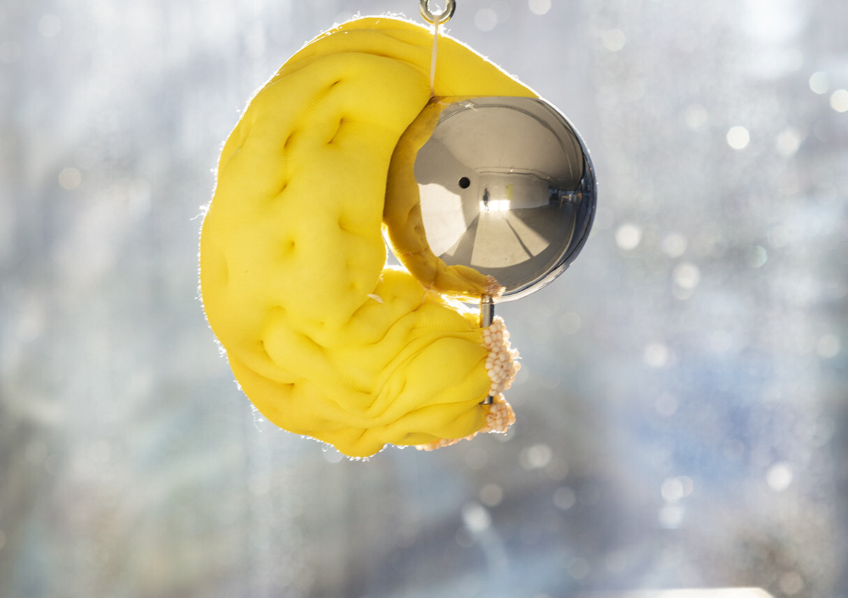 Her organic objects will be clusters of diversity created from glass, mirrors, metal, textiles, and other materials. They will be hung, which will allow them to have a gentle rotation, dynamics, life.