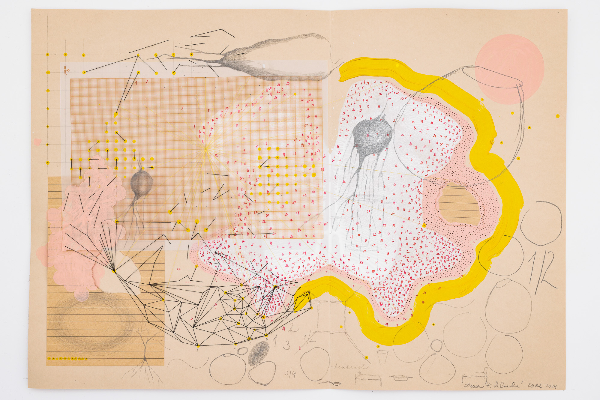 Despite the haptic appearance and playfulness of her objects, drawings, paintings, and sculptures, her works are bound to an analytical principle and hold a balance between abstraction and narrative. Lehocká's object constellations are the sediment of a tedious artistic production process, which begins initially with a concrete method of relating to the object and then proceeds to work away from it by exploring the infinite combinability of graphic elements. With these anthropomorphic bodies, she develops spatial sculptural installations (“spatial collages,” as she calls them), with special attention to the way they inhabit the given space. Her works are levitating materializations of the so-called immaterial and representations of deep subjectivity and the ephemeral.