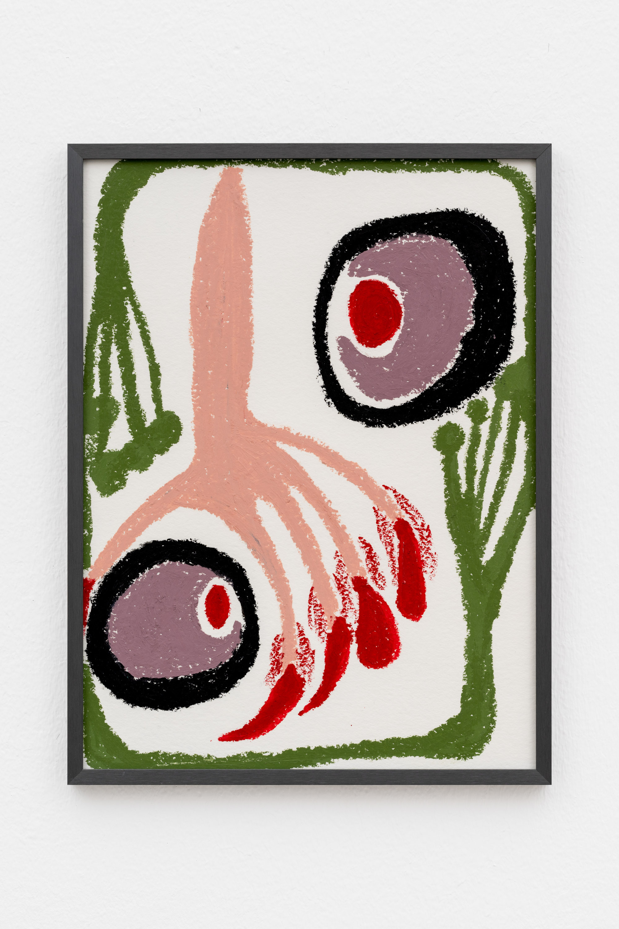 After presenting large-scale immersive installations, together with Ashley Hans Scheirl, in the Austrian Pavillion at the Venice Biennale in 2022 and in their current exhibition Doppelganger! at Palais de Tokyo on view until January 5, 2024, in her exhibition 8 Zeichnungen, Jakob Lena Knebl, concentrates exclusively on the medium of drawing.Her first exhibition at Georg Kargl PERMANENT in 2018 already featured a series of oil stick drawings that stood out for their lightness and immediacy. Closely interwoven with her sculptures and installations, her graphic work finds its own quality in Knebl's diverse oeuvre.