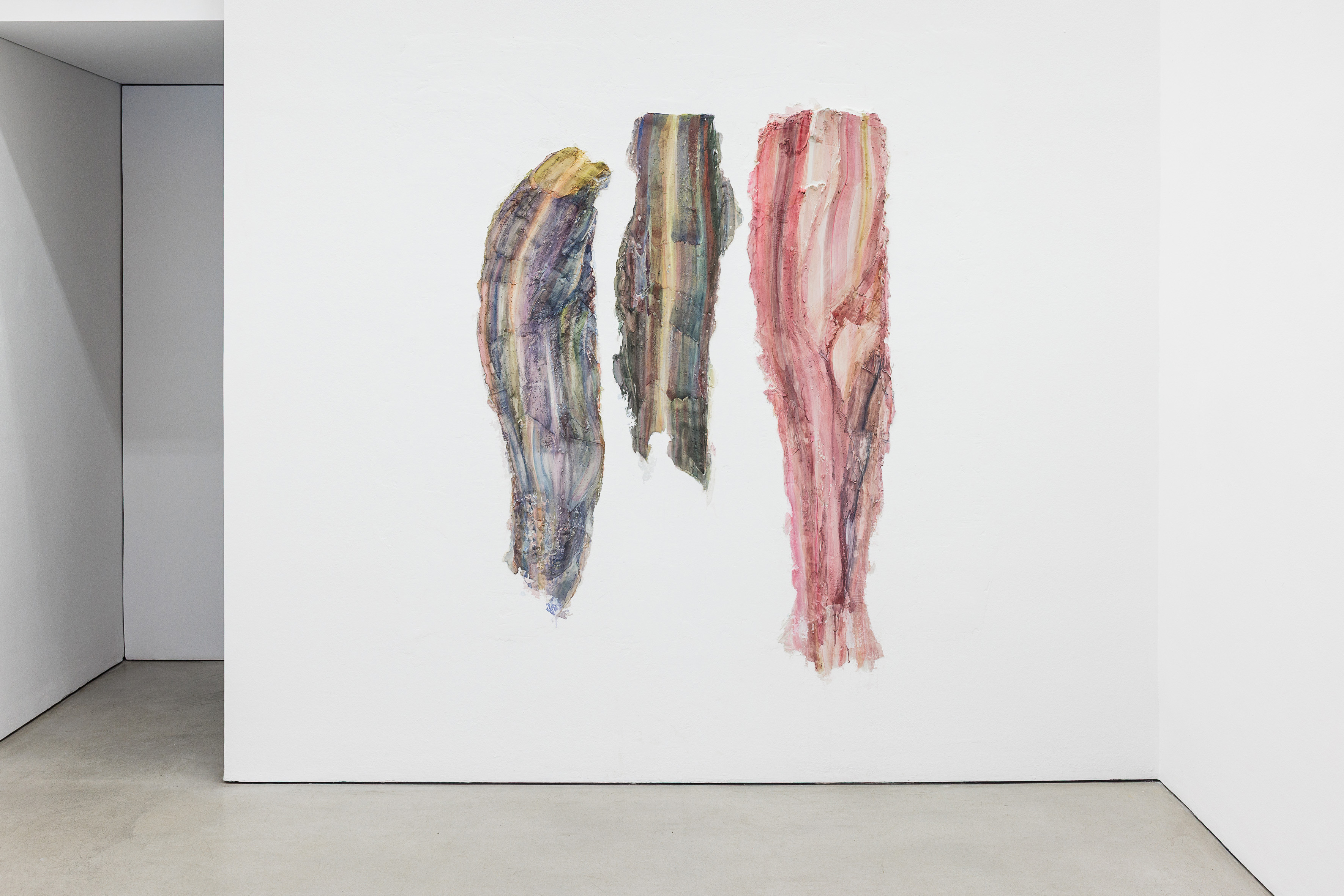 Mangrané's exploration extends to the direct medium of watercolour on plaster, which can be seen in Dissipation X, a piece that captures the gesture of seepage and evaporation, leaving behind a fragile, fossilised record of dissipated energy.